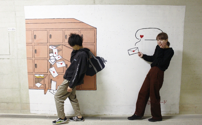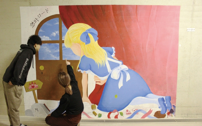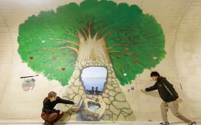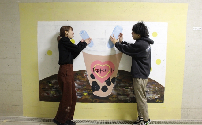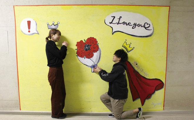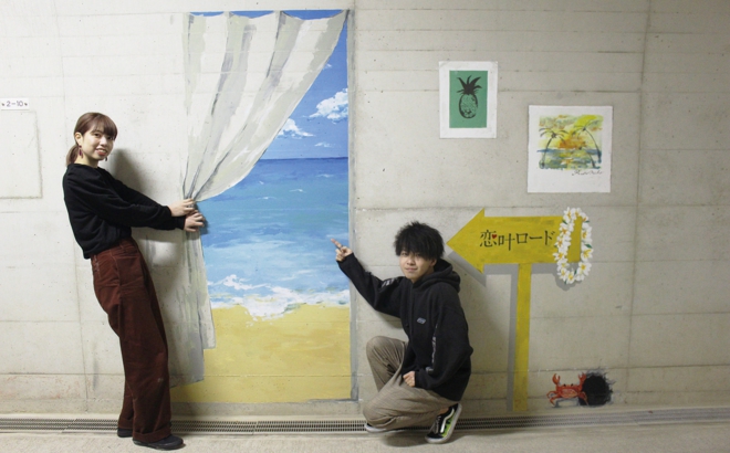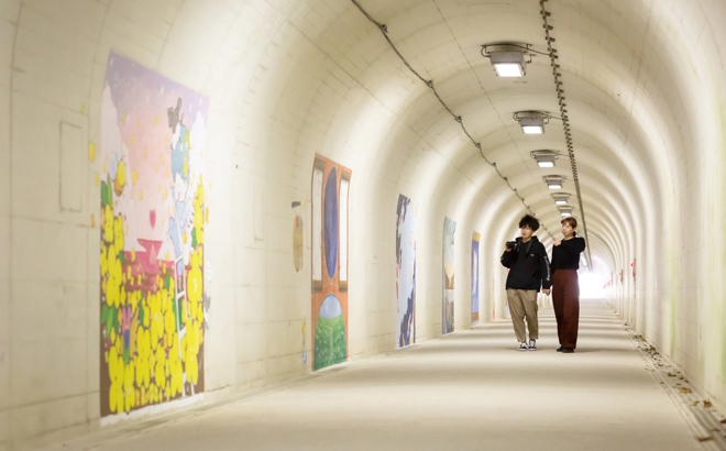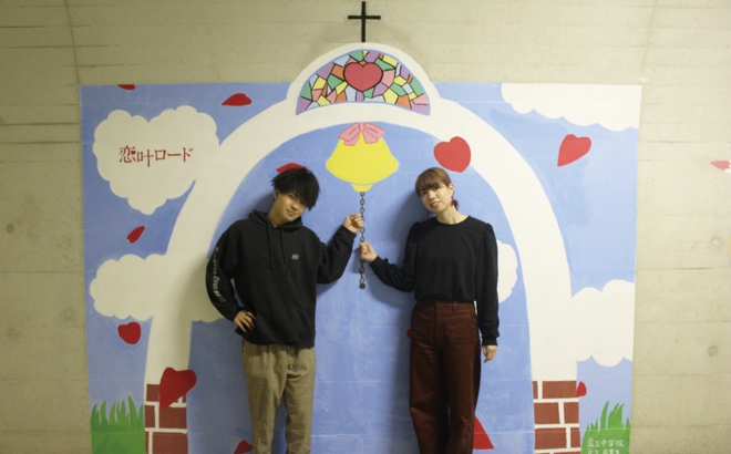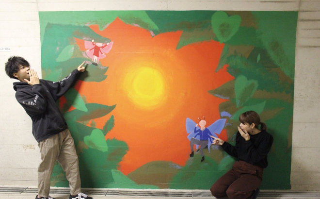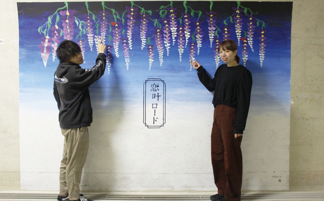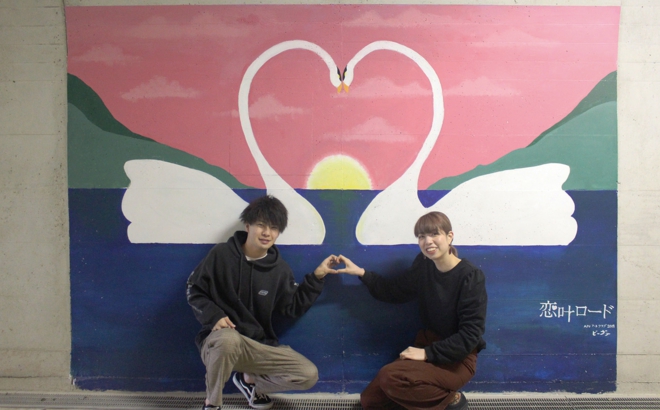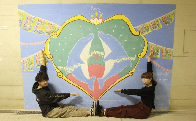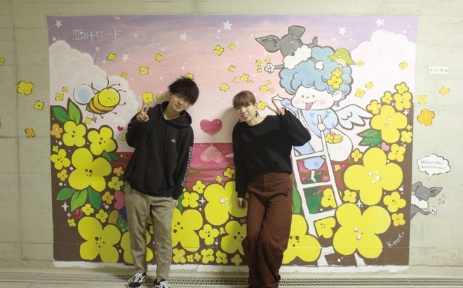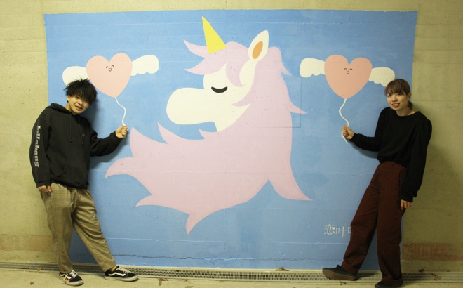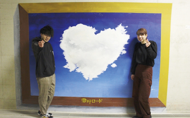 その後、総合ディレクターとして壁画アーティストの空間ペインター芳賀健太氏を迎え、恋叶トンネルアート「LOVE-happy colorful tunnel project-」というプロジェクトのもと、2019年8月~2020年3月の期間で、更にトンネル内の残りの壁面に、有志で集まった県内8校の学生たちと一般の方々の手で描き、恋を叶える場所(デートスポット)を自分たちで創るという大きな試みを行い、トンネル内には計50作品以上のフォトジェニックなアート作品が完成しました。