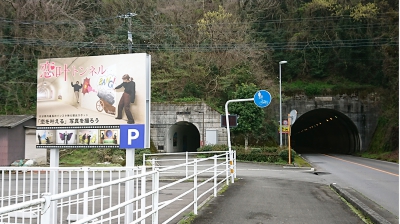 専用駐車場がトンネルの側にあり、トンネル内の案内看板も設置しております。
