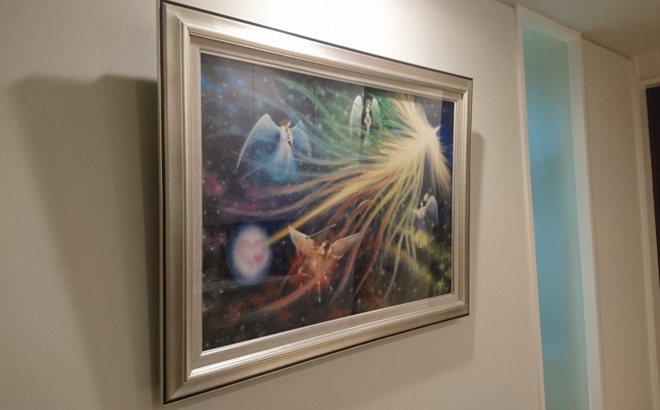茶色を基調としたインテリアでしたので、額縁も、シルバーでシックな印象のある額縁にしました。