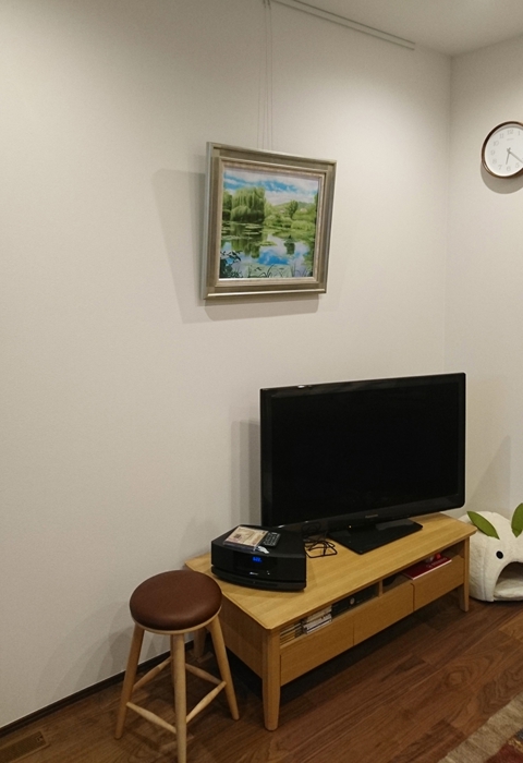 茶色を基調としたインテリアでしたので、額縁も、シルバーでシックな印象のある額縁にしました。