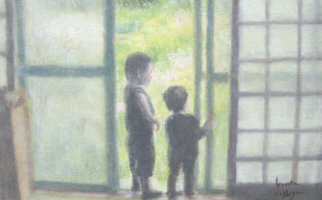 個展用制作:安息の光 サイズ:900mm×10mm板 油絵 2013.7