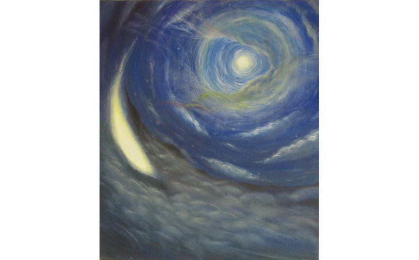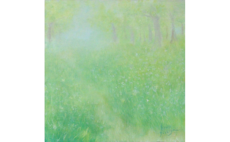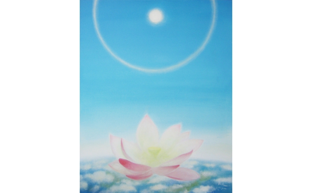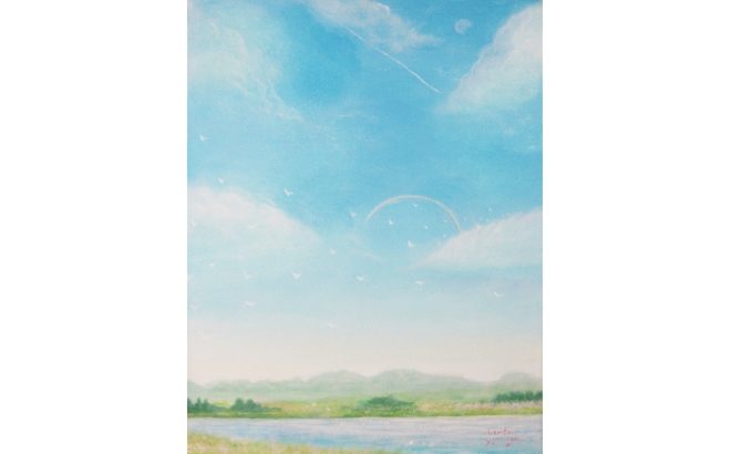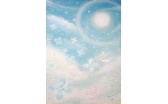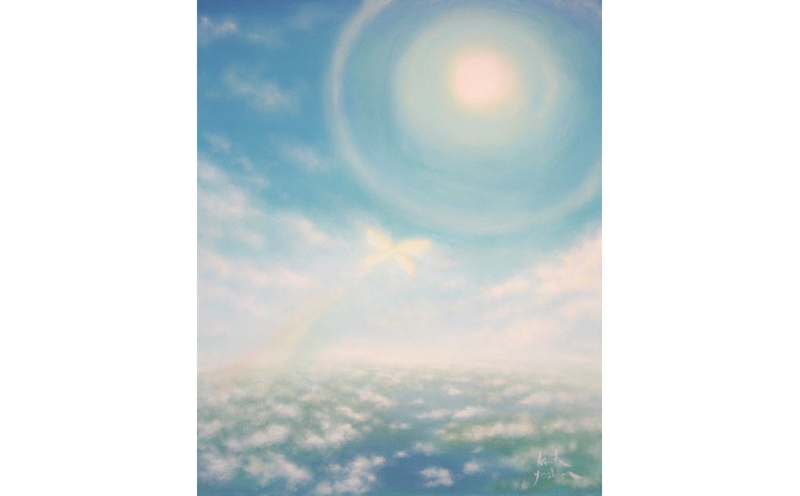 個展用制作:「明日への希望~不思議な力に包まれて~」サイズF6号・キャンバス・油彩 2017.4