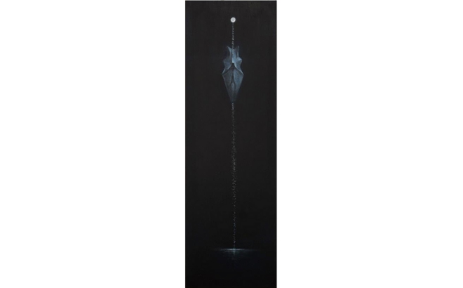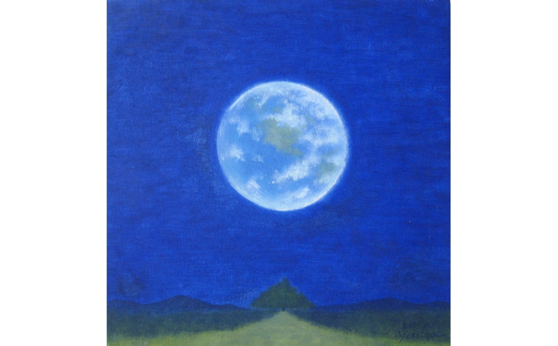 個展用制作:竹竹楽~月に祈る~ サイズ900mm×10mm板 油絵 2013.7