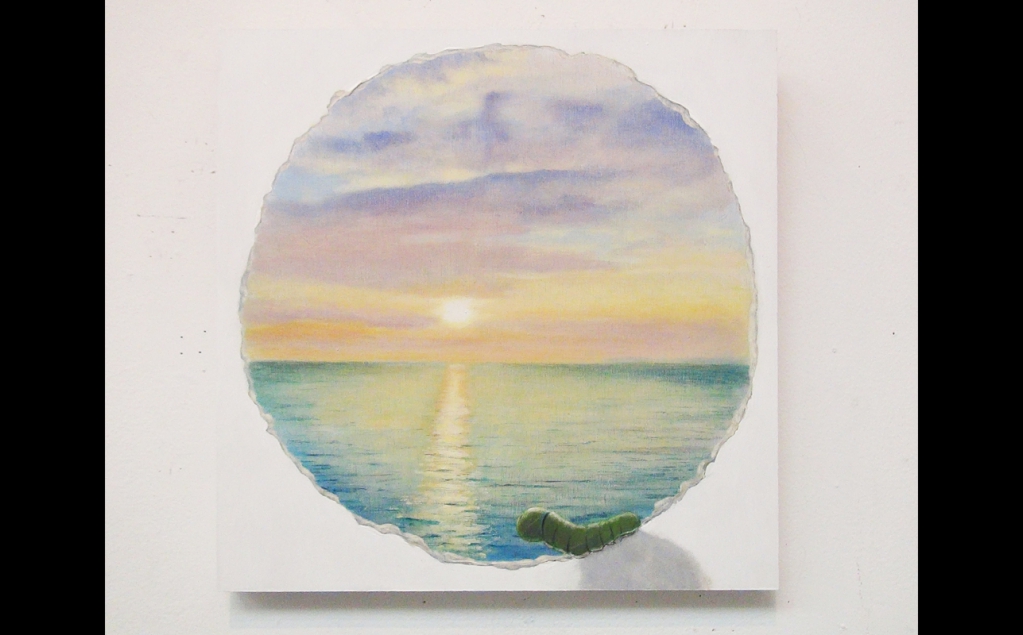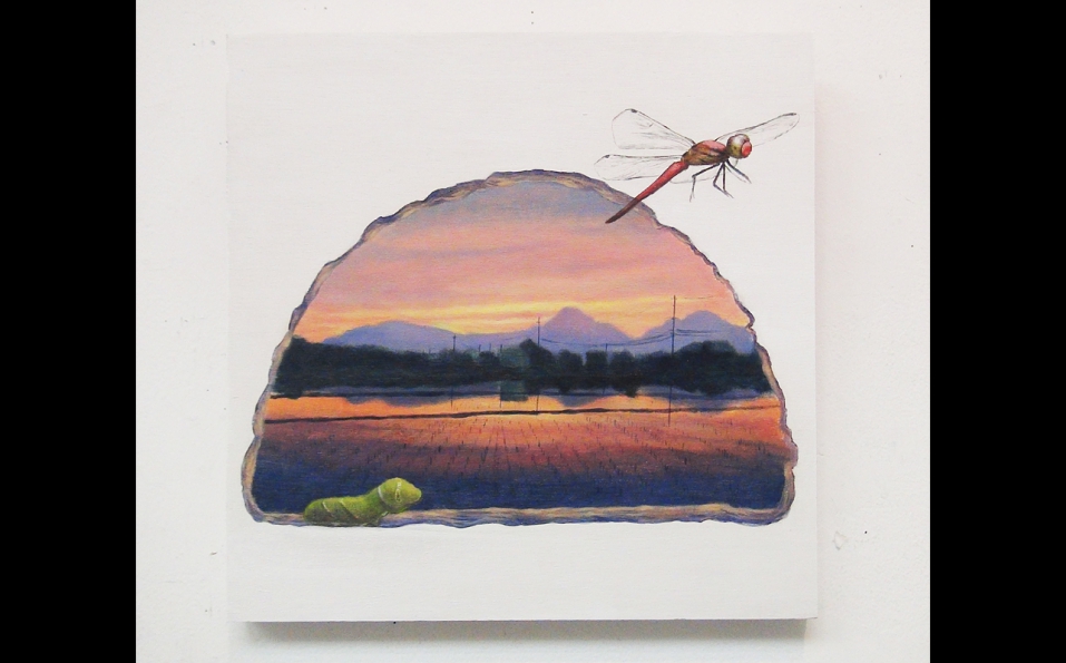 個展用制作:ゆめつくり虫~夕~ サイズ310mm×310mm 木製パネル アクリル 2013.3