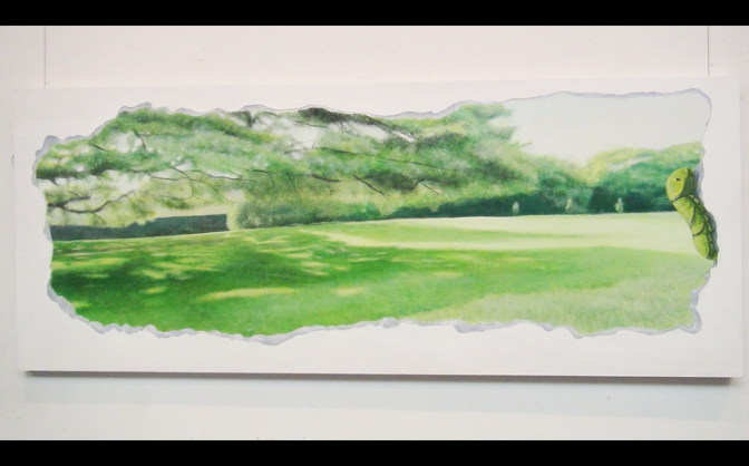 個展用制作:自然の詩~草原のひととき サイズ:900mm×350mm 木製パネル アクリル画 2014.7