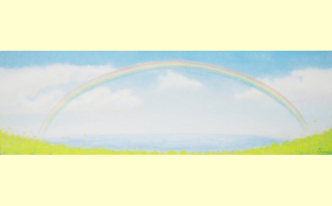 個展用制作:虹~音楽景色~ サイズ900mm×450mm 木製パネル 油絵 2014.3