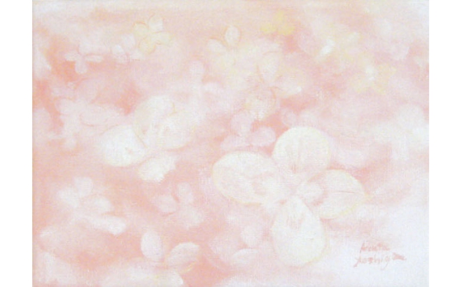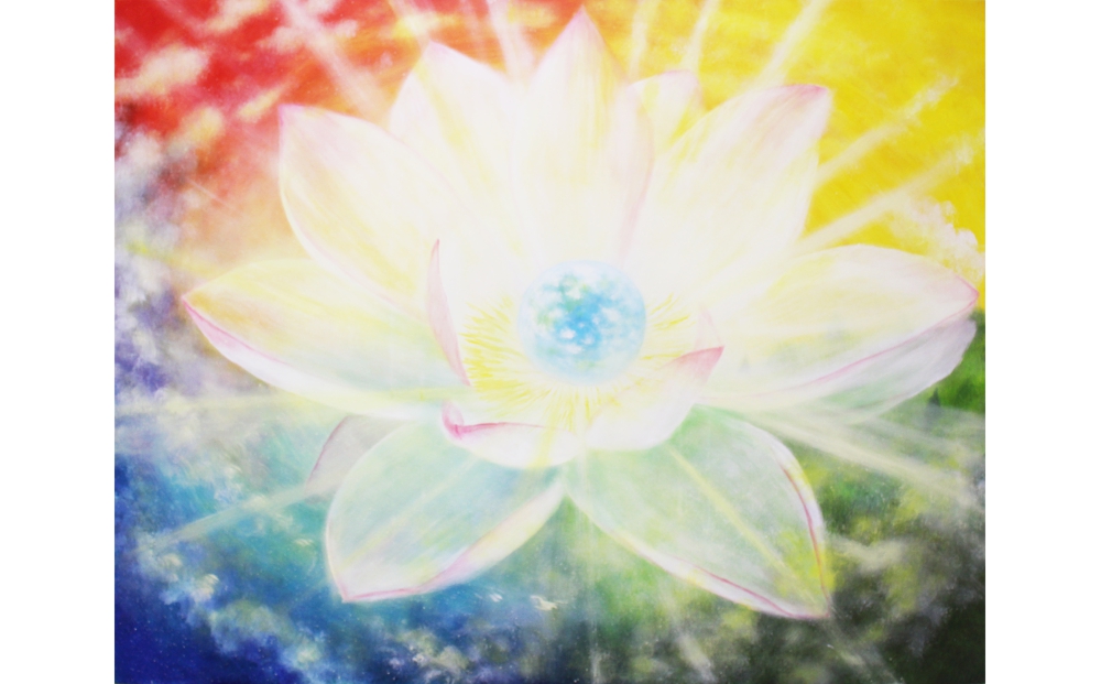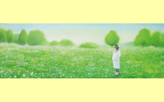 個展用制作:「HANA~祈り~」サイズF60号・キャンバス・アクリル画 2014.7 現代になってもなくならない戦争のニュースを見て、平和への祈りを込めて描いた作品