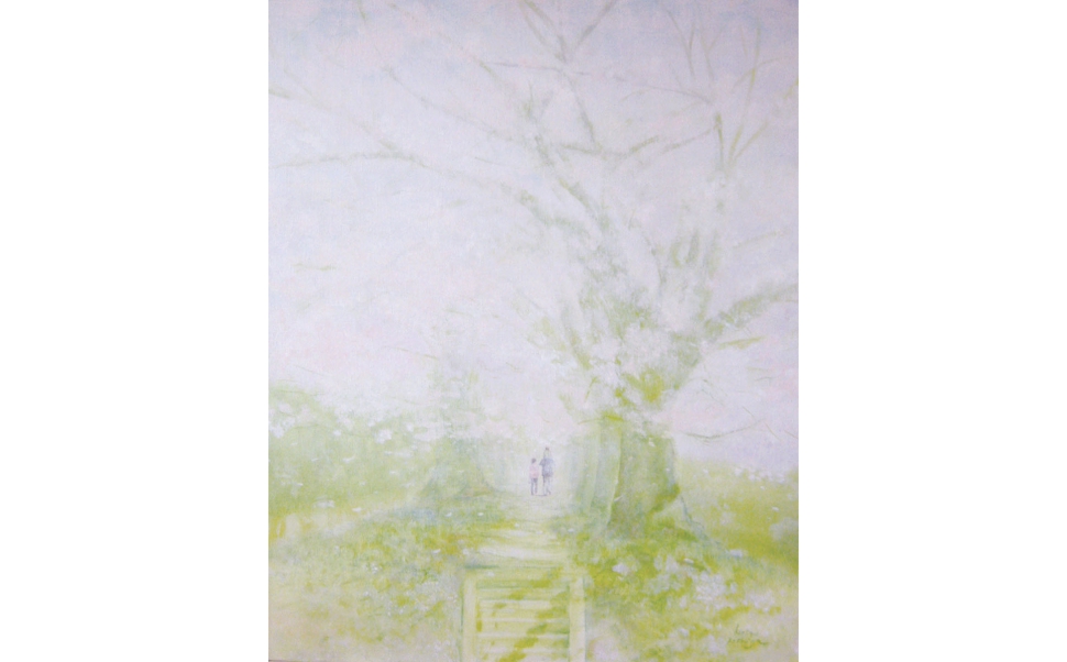 個展用制作:幸せな風景~桜木の下で~ サイズF10号 キャンバス・油絵 2010.6