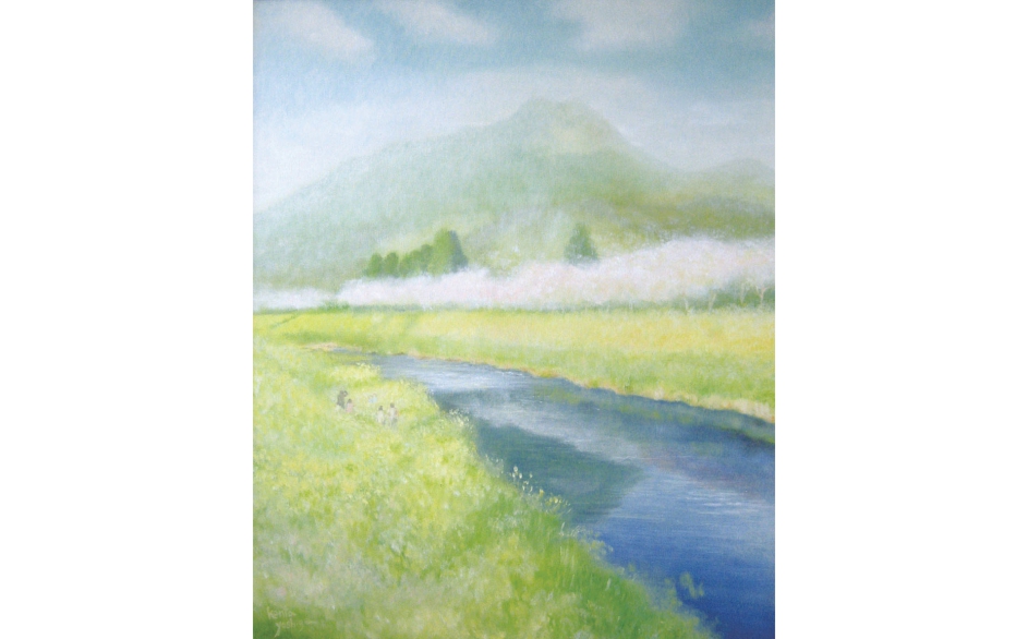 個展用制作:幸せな風景~由布岳の下で~ サイズF20号 キャンバス・油絵 2010.6