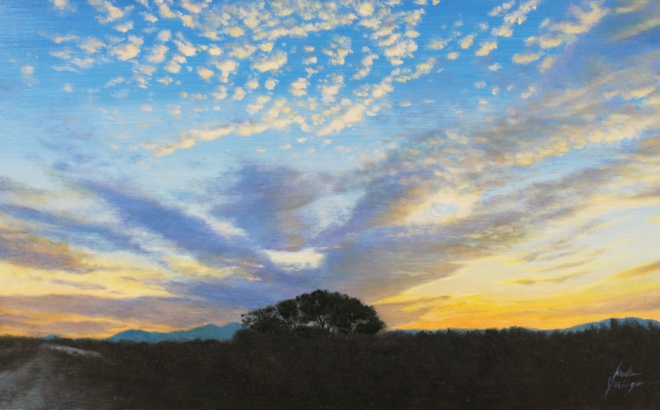 個展用制作:「希望の夕陽」サイズM8号・木製パネル・油彩 2017.4