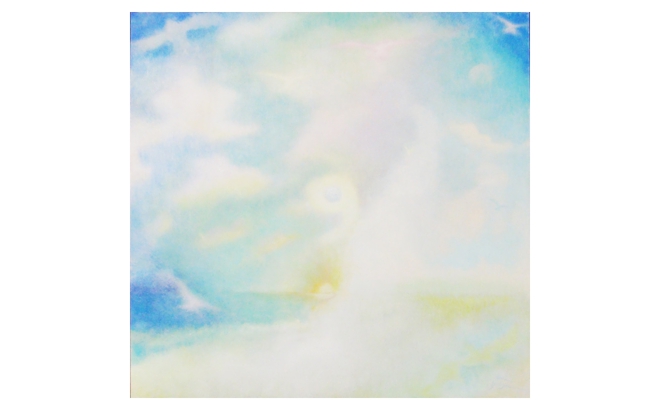 個展用制作:感謝~悲しみの海と空にぬくもりの光~ サイズ290mm×290mm板 油絵 2012